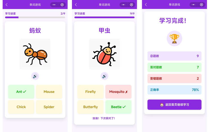 今年3月份,在B站上看到了各种“AI编程”的视频,都说普通人可以用AI编程来做自己的产品了。我跟着教程做了几个简单Demo后,我决定自己做一个能上线的产品。我有信心能做成功,因为我比普通人强点,本身就是做产品的,而且我还自学过python和react的一些知识,可以写简单的小功能。想来想去,最后决定给我女儿做一个背单词的英语学习小程序“洛洛的学习工具”。我大概花费了3周的时间完成了开发,主要是前后台联调浪费的时间最多。